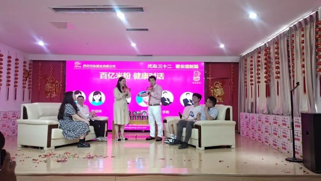為更直觀地了解光友薯類健康主食,本次活動還特別邀請五位嘉賓上臺與鄒光友董事長現(xiàn)場健康對話,對話的嘉賓分別是綿陽城市學(xué)院雙創(chuàng)中心主任李衡、綿陽市靖華節(jié)能環(huán)??萍级麻L王華、四川敬科智能裝備科技副總經(jīng)理肖飛雨、綿陽西城大學(xué)生創(chuàng)新創(chuàng)業(yè)園創(chuàng)業(yè)導(dǎo)師杜佳林、綿陽城市學(xué)院雙創(chuàng)中心何愛清,與會嘉賓在這里共同探討米粉行業(yè)的未來發(fā)展趨勢及健康飲食的重要性,共享基地帶動大學(xué)生創(chuàng)新創(chuàng)業(yè)發(fā)展。