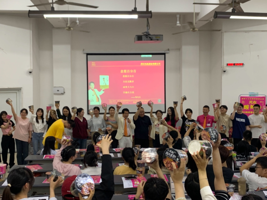 演講過程中,光友薯業(yè)董事長強(qiáng)調(diào),他與光友薯業(yè)始終不忘初心,從未停止過改變紅薯命運(yùn)的偉大愿景,光友薯業(yè)在32年間,共進(jìn)行了六次具有歷史突破性的粉絲革命,先后斬獲國內(nèi)外多項(xiàng)榮譽(yù)與專利,并在不久前全新發(fā)明了全球領(lǐng)先的低GI健康薯類主食——光友綿陽米粉和光友酸辣粉,科學(xué)健康和方便美味完美相融,該類粉絲一經(jīng)亮相,便立即受到了業(yè)內(nèi)外的認(rèn)可與追捧。現(xiàn)場同學(xué)食指大動,也對光友這個國貨老品牌有了全新的認(rèn)知。