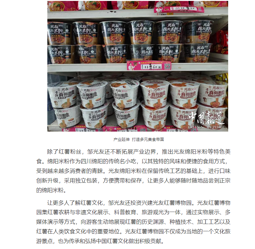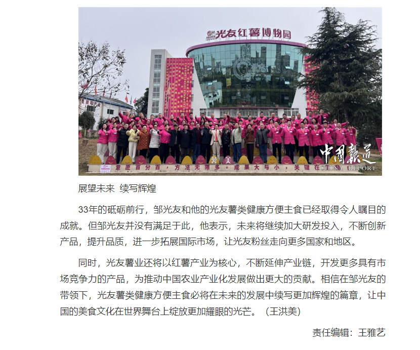 轉(zhuǎn)載中國報道網(wǎng)——鄒光友33年專注一根紅薯粉絲 暢銷全世界