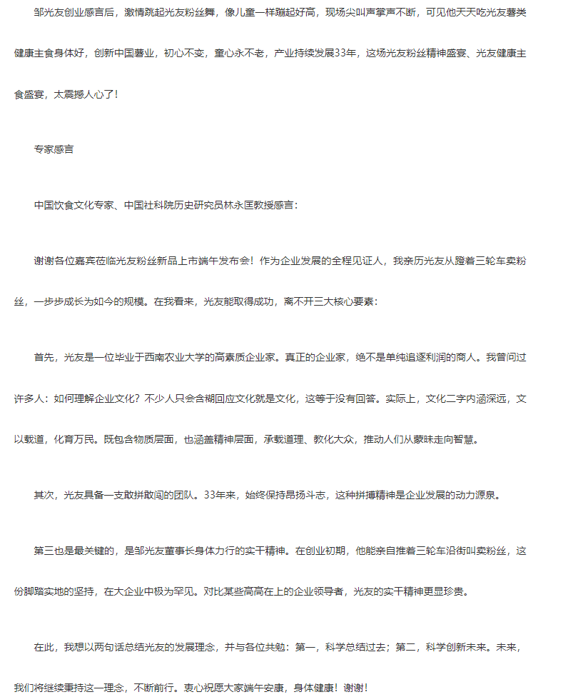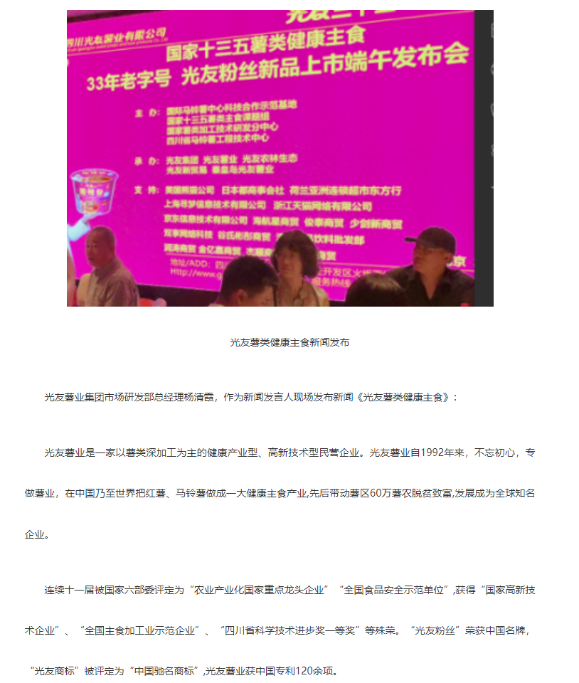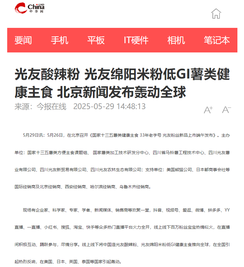 轉載中華網——光友酸辣粉 光友綿陽米粉低GI薯類健康主食 北京新聞發(fā)布轟動全球