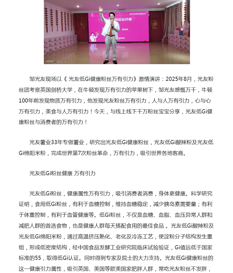 第七次世界粉絲革命——光友全球首創(chuàng)低Gi健康粉絲