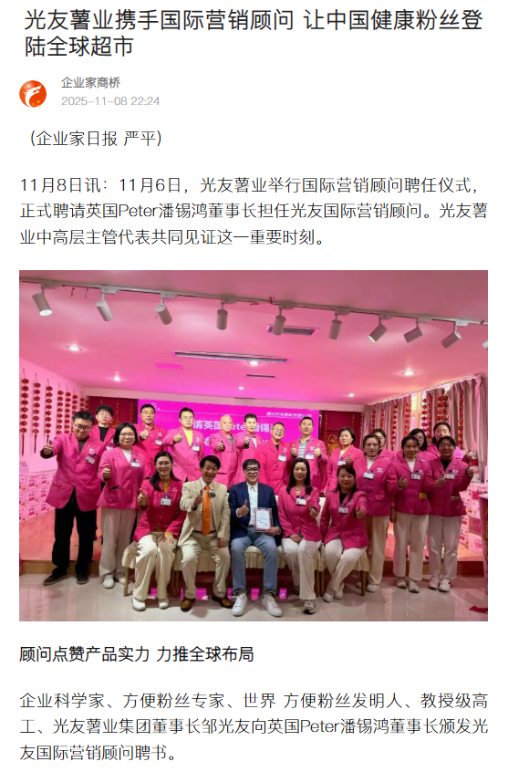 光友薯業(yè)攜手國(guó)際營(yíng)銷顧問(wèn) 讓中國(guó)健康粉絲登陸全球超市
