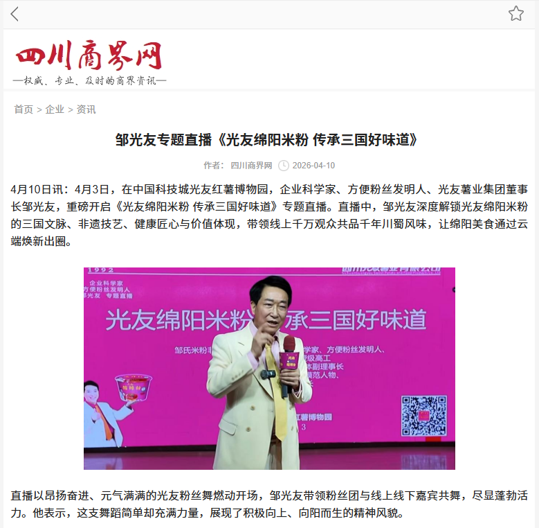 轉(zhuǎn)載四川商界網(wǎng) 鄒光友專題直播《光友綿陽米粉 傳承中國好味道》